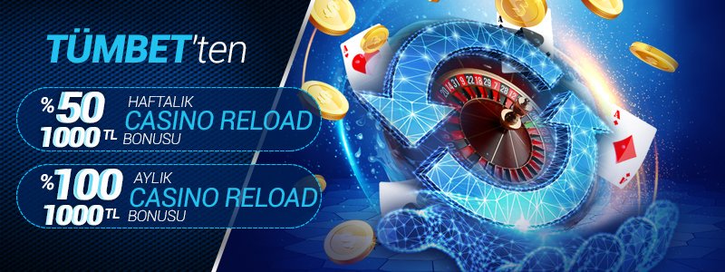 Tümbet’te casino oyuncuları her zaman kazançlı ve daha şanslı. Tümbet’in en yeni promosyonlarından bir tanesi olan Haftalık %50 Tümbet Casino Reload Bonusu ile istediğiniz herhangi bir yatırım yöntemi ile yapacağınız yatırımlarınıza 1000 TL’ye kadar bonus alabilrsiniz.